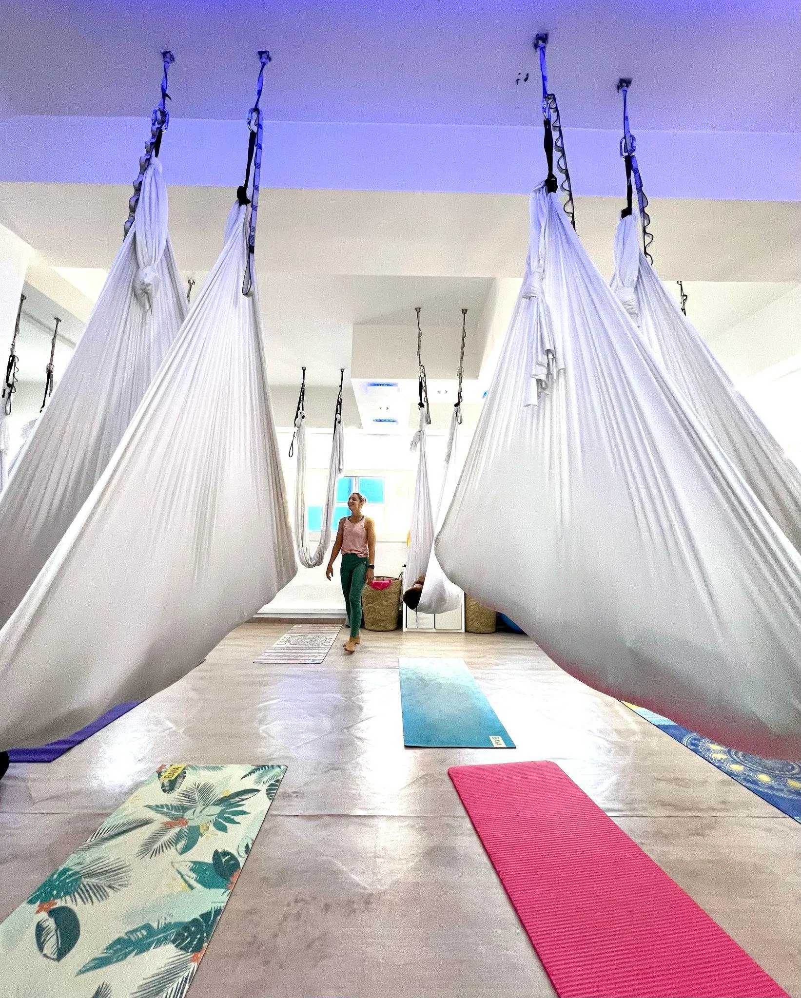 Les possibilités que nous vous offrons sont multiples pour que vous puissiez trouver votre bonheur : yoga aérien, Pilates, Pilates Reformer, Yin, Yoga vinyasa, Yoga doux et Danse Orientale…